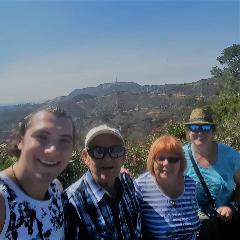 Here we are, fitting ourselves into one selfie with the HOLLYWOOD sign in the background.